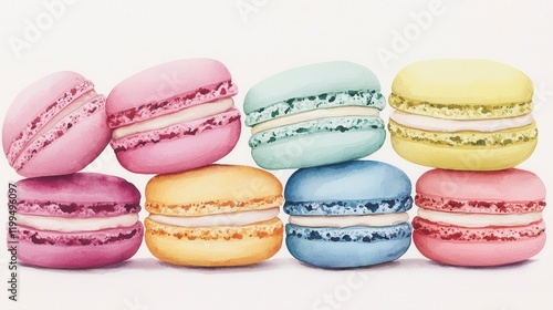 pastel, colours, stacked, dessert, sweet, confection, food, epicure, pastry, treat, indulgence, delicious, bakery, cream, filling, icing, vibrant, colourful, decoration, presentation, enjoyment, celebration, brunch, catering, festive, texture, favor, art, beauty, culinary, elegance, style, hand-made, artistry, refined, joyful, appealing, visual, taste, sugar, snack, delicacy, fresh