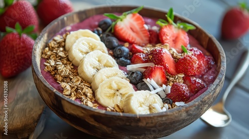 Delicious Acai Bowl with Strawberries, Bananas, and Blueberries