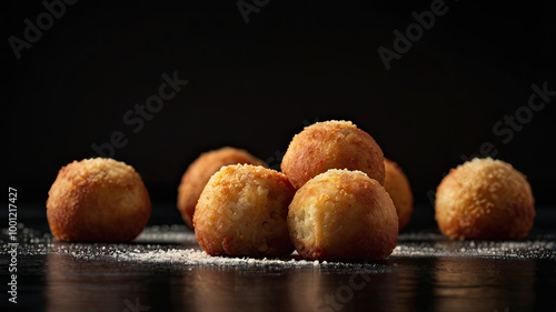Delicious Arancini Italian Rice Balls on Black Background with Blank Space for Copy.