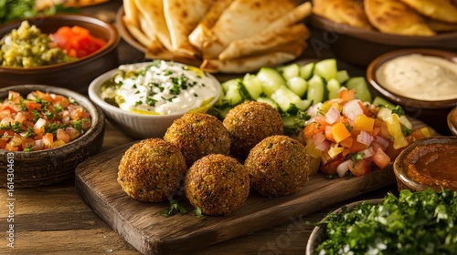 Delicious Assorted Middle Eastern Cuisine with Falafel and Dips