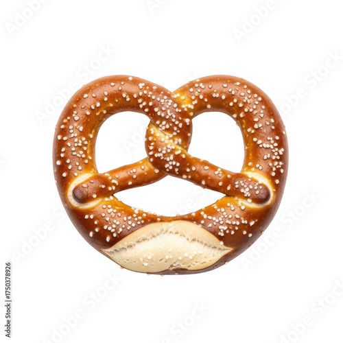 Delicious baked pretzel with salt sprinkles, german treat, food photography, bakery item, snack image, brown pretzel isolated on transparent background