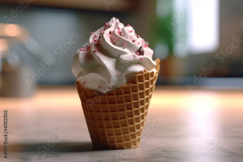 Delicious beautiful ice cream on bright background, Ai generated