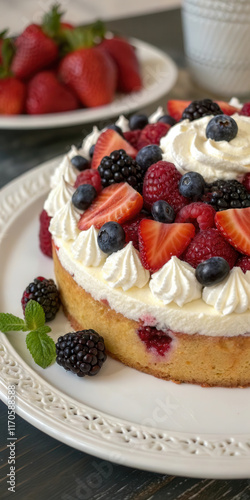 Delicious Berry Cake with Whipped Cream and Fresh Fruit Toppings