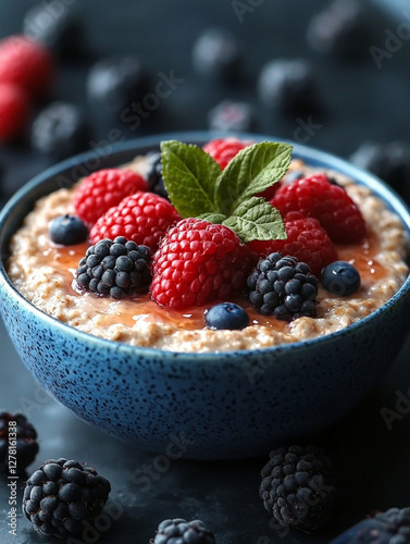 Delicious bowl of oatmeal topped with fresh berries