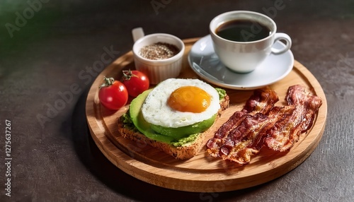 breakfast, bacon, fried, egg, avocado, toast, cherry, tomatoes, hot drink, morning, meal, cosy, setting, food, presentation, savoury, delicious, epicure, healthy, brunch, comfort, egg, hot, beverage, culinary, organic, ripe, relaxation, enjoyment, styling, energy, promoting, nutritional, appetising, lover, fresh, ingredient, homemade, kitchen, delight, wholesome, routine, easy, eating, life events, art, favor