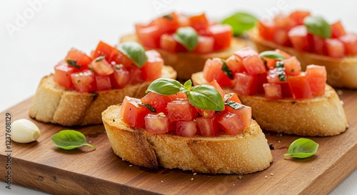 Delicious Bruschetta Appetizer Toasted Bread Tomatoes Basil