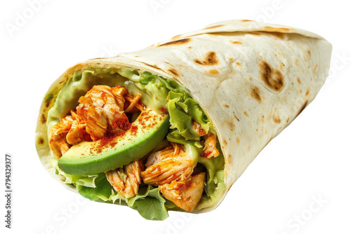 Delicious Buffalo Chicken Wrap with Avocado Isolated on a Transparent Background