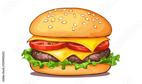 Delicious Burger with Melty Cheese and Fresh Vegetables Illustration for Unhealthy Food Concepts