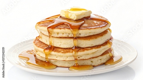 Delicious Buttery Pancakes Stack with Syrup Drizzle for Breakfast A tempting image of golden pancakes