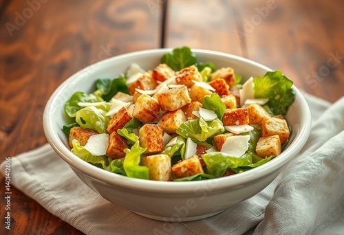 warm, cookery, lettuce, delicious, crouton, salad, cheese, flavorful, appetising, tablecloth, food, photo, dressing, epicure, juice, aromatic, romaine, dish, culinary, photorealistic, crunchy, lighting, parmesan, sensational, white, wooden, fresh, bowl, caesar, ceramic, lemon, kitchen, anchovy, table, tasty, garlic, soft