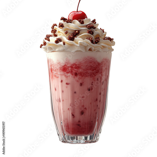 Delicious cherry milkshake with whipped cream and chocolate topping image on transparent background
