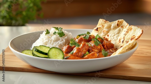 chicken, curry, food, dish, rice, vegetable, cucumber, plate, meal, herb, spice, kitchen, cooking, cookery, epicure, dinner, lunch, fresh, savoury, favor, tasty, natural, organic, eat, hearty, exotic, nourishment, presentation, table, wood, white, creamy, spicey, healthy, culinary, preparation, eatery, receipe, enjoyment, comfort, dining, garnish, ingredient, side, colourful, traditional, warmth, aroma