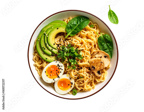 Delicious Chicken Ramen with Soft-Boiled Eggs and Greens on Transparent Background