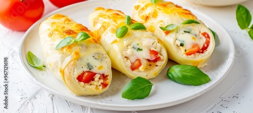 Delicious chicken rolls filled with mozzarella, tomatoes, and pesto for a balanced home-cooked meal.