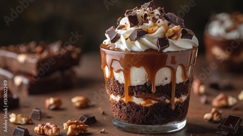 chocolate, caramel, dessert, cake, sweet, nut, whipped, cream, delicious, food, tasty, treat, brownie, glasses