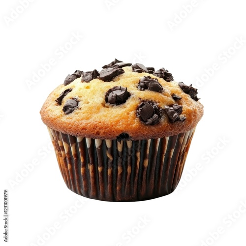 Delicious Chocolate Chip Muffin on White Background for Bakery Use