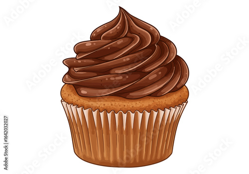 Delicious Chocolate Frosted Cupcake with Paper Liner Illustration.