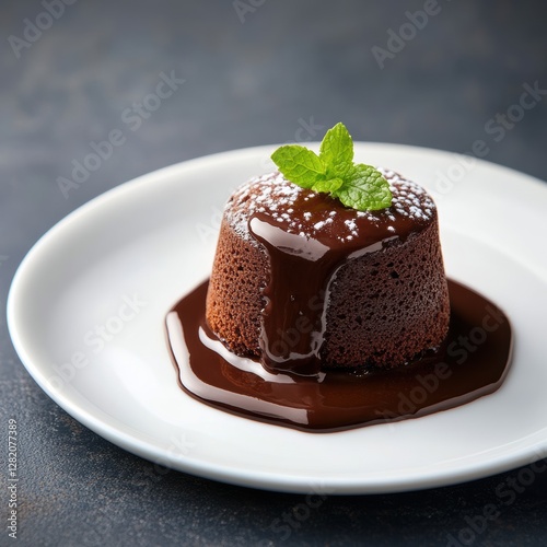 chocolate, cake, lava, dessert, epicure, sweet, oozing, rich, treat, pastry, indulgence, baking, food, confection, culinary, elegant, plate, mint, garnish, gourmet food, eatery, homemade, creamy, texture, decadent, happiness, celebration, slice, warm, brown, circular, round, decorated, delicious, smooth, melted, favor