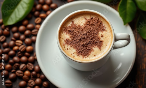 Delicious coffee topped with cocoa powder