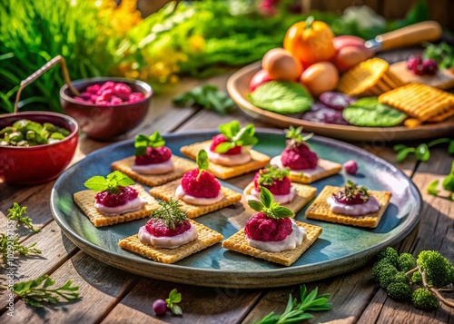 Delicious Crackers and Beet Dip Platter Under the Sunshine for Outdoor Gatherings
