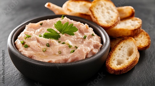 dip, food, creamy, parsley, chives, baguette, bread, toasted, snack, delicious, tasty, cookery, culinary, meal, dish, gastronomy, epicure, pink, brown, bowl, dark, texture, crispy, smooth