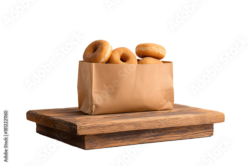 donut, bag, rustic, black background, food, dessert, pastry, sweet, baked goods, snack, still life, table, wood, sugar, delicious, presentation, display, bakery, closeup, no people, studio shot, transparency, cut-out, isolated, sweet, food photography