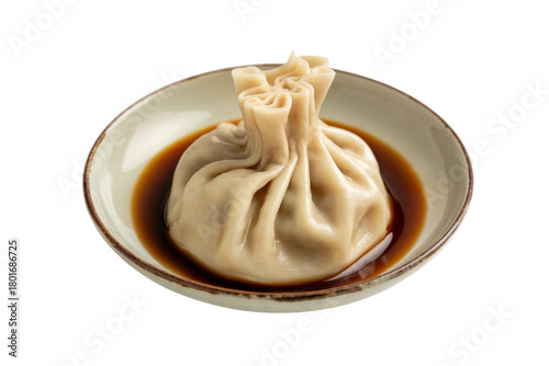delicious dumpling in a bowl with savory sauce . Isolated on transparent background, png