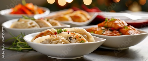 Delicious dumplings, potstickers, and Asian-style dishes served in elegant white bowls.