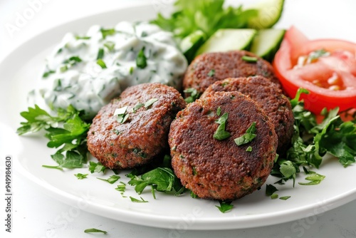 tzatziki, salad, cucumber, tomatoes, parsley, dinner, greek, dining, middle, eastern, cookery, food, lunch, vegan, vegetarian, healthy, delicious, tasty, snack, epicure, white, plate, fresh, herb, green, brown, red, close, up, macro, still, life, photo, culinary, receipe, cooking, eatery, dish, favor, protein