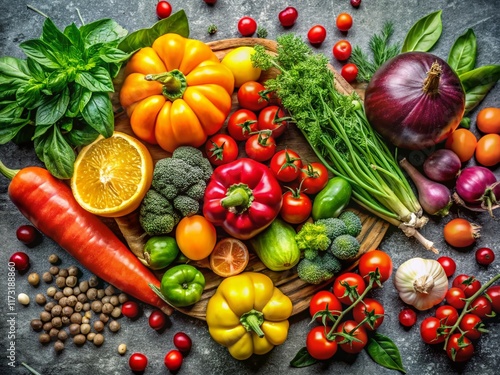 Delicious Flat Lay Food Photography: Colorful Corner Arrangement of Fresh Ingredients