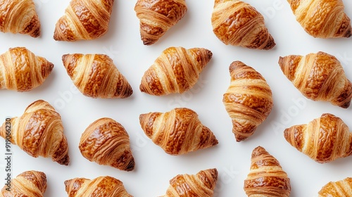 Delicious freshly baked croissants pattern on white background
