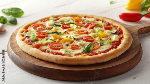 Delicious Freshly Baked Pizza with Colorful Vegetables and Cheese