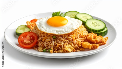 Delicious Fried Rice with Sunny-Side Up Egg and Fresh Cucumber Garnish