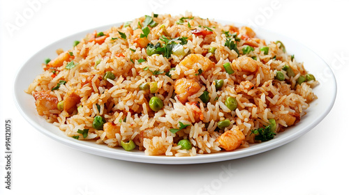 delicious Fried rice with vegetables on a plate isolated white background