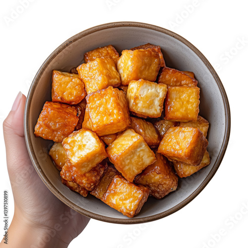 Delicious fried tofu cubes kitchen food photography on a transparent background