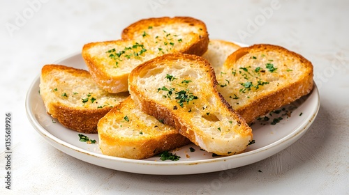 Delicious garlic bread slices kitchen food photography warm setting close-up culinary delight