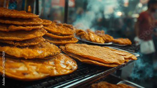 Delicious golden brown fried flatbreads street food asian cuisine hot eat meal snack tasty lunch
