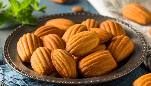 Delicious Golden Brown Madeleines Cakes on Antique Plate Sweet Treats