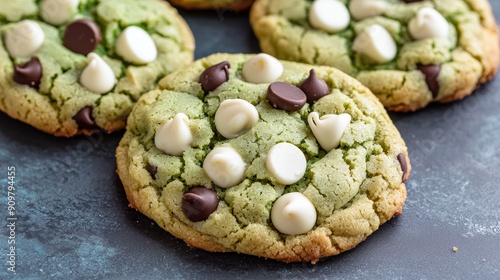 Delicious green tea cookies with white chocolate chips and dark chocolate chunks
