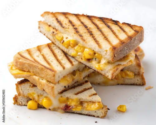 Delicious grilled cheese sandwich with sweet corn and melted cheese.