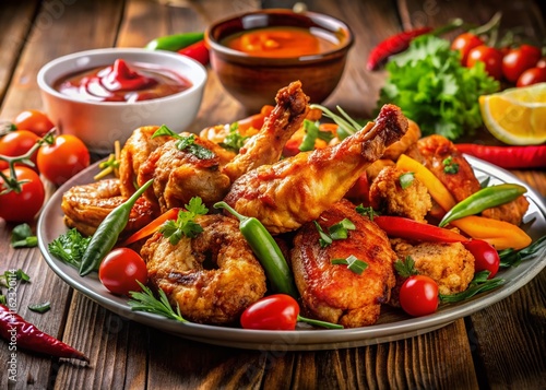Delicious Grilled Chicken Wings, Roasted Chicken, and Shrimp Feast