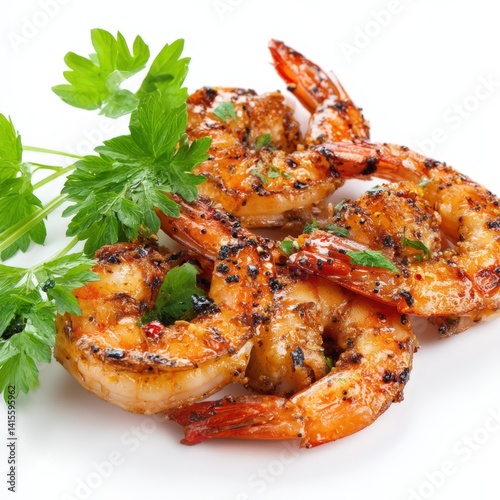 Delicious Grilled Shrimp with Parsley Garnish Close up Food for Restaurant Menus and Culinary Websites