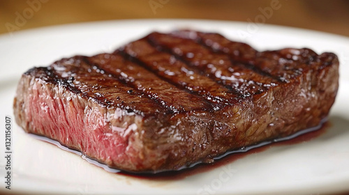 Delicious grilled steak juicy medium rare beef food image red meat cook meal dish tasty brown plate