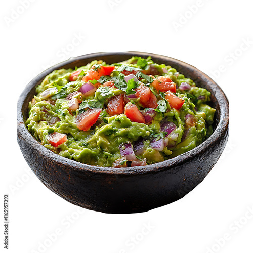 Delicious Guacamole in Bowl Transparent Background.