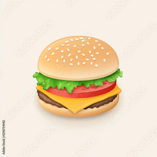 Delicious hamburger with sesame seed bun, cheese, lettuce, tomato, and beef patty, perfect for tasty meal