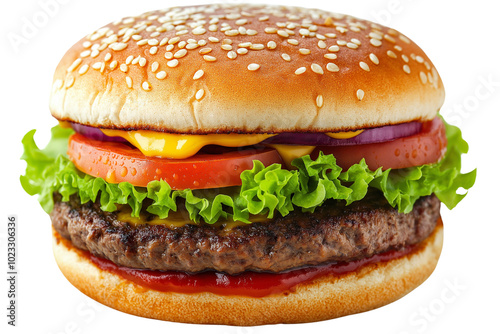 Delicious Hamburger with white Background, png transparent die cut.