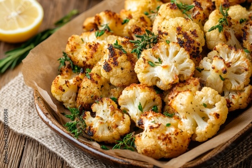 delicious, herb, infused, roasted, cauliflower, wing, zesty, lemon, rustic, brown, surface, vegetarian, snack, healthy, cooking, dish, seasoned, flavorful, crispy, oven, baking, spice, garnish, olive oil, savour, gold, texture, presentation