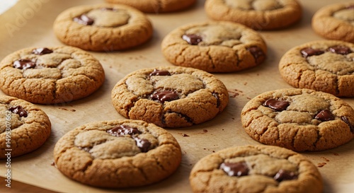 cookie, chocolate, homemade, baking, dessert, sweet, snack, fresh, oven, delicious, treat, chewy, chips, confectionery, dough, epicure, indulgence, pastry, gold, brown, baked, parchment, tray, batch, kitchen, warm, crispy, soft, cocoa, ingredient, sugar, flour, butter, culinary, food, tasty, nutty, tempting, texture, aroma, appetising, traditional, mouth-watering