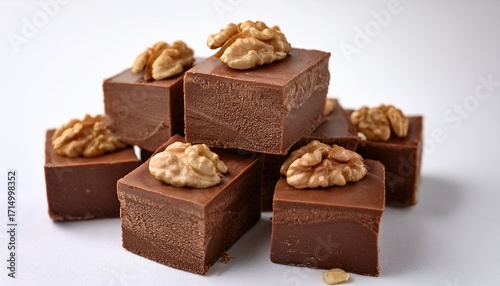 Delicious Homemade Chocolate Fudge With Walnuts On A White Background Perfect For Dessert Lovers And Sweet Treat Enthusiasts Seeking Indulgent Snacks