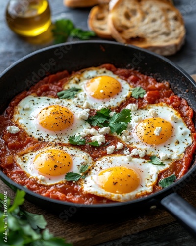 egg, breakfast, brunch, mediterranean, healthy, protein, comfort food, rustic, savoury, spicey, fresh, parsley, olive oil, bread, cast iron, food photography, culinary, appetising, homemade, delicious, italian, vegetarian, hearty, simple, flavorful, wholesome, nourishing, epicure